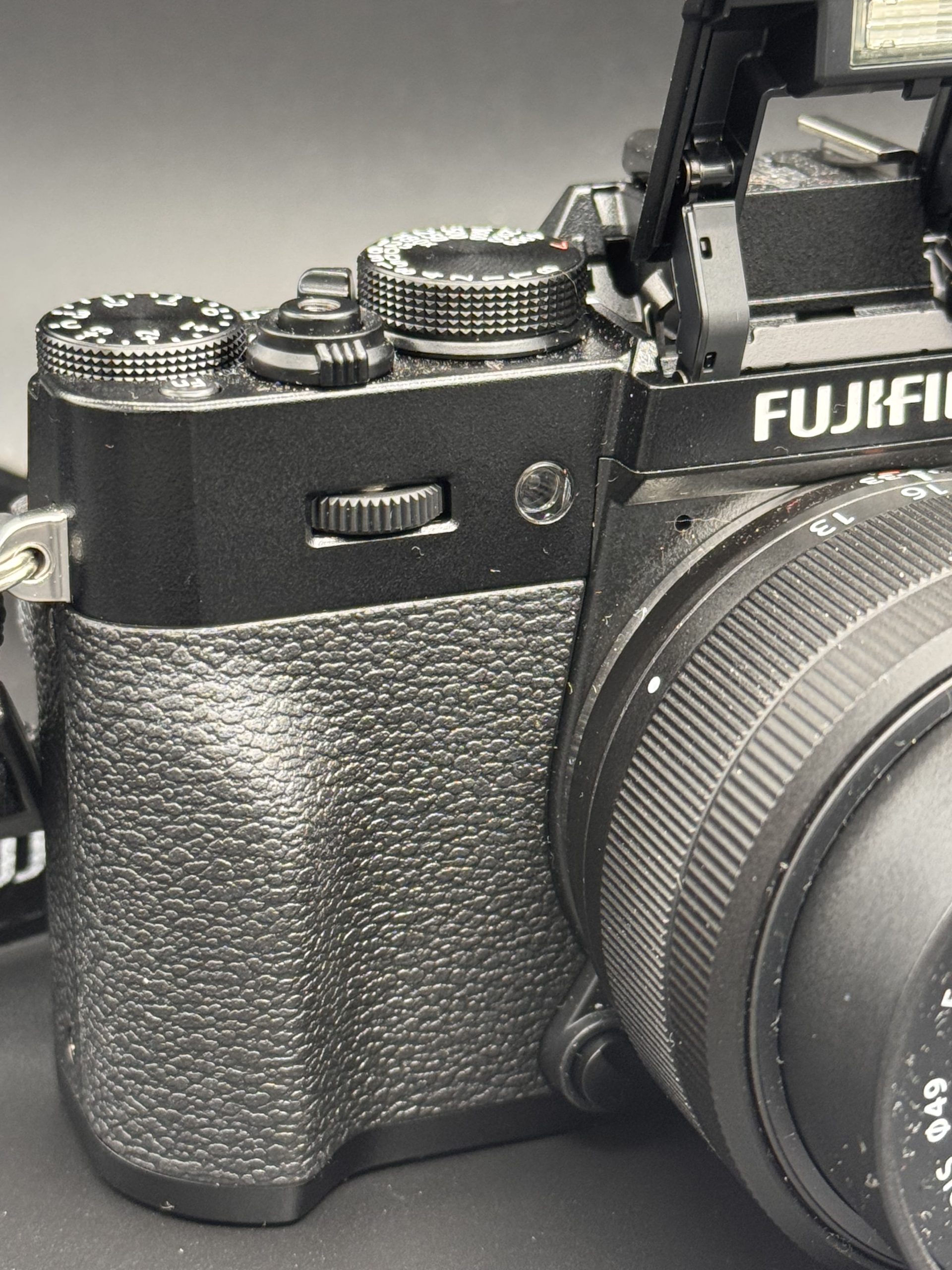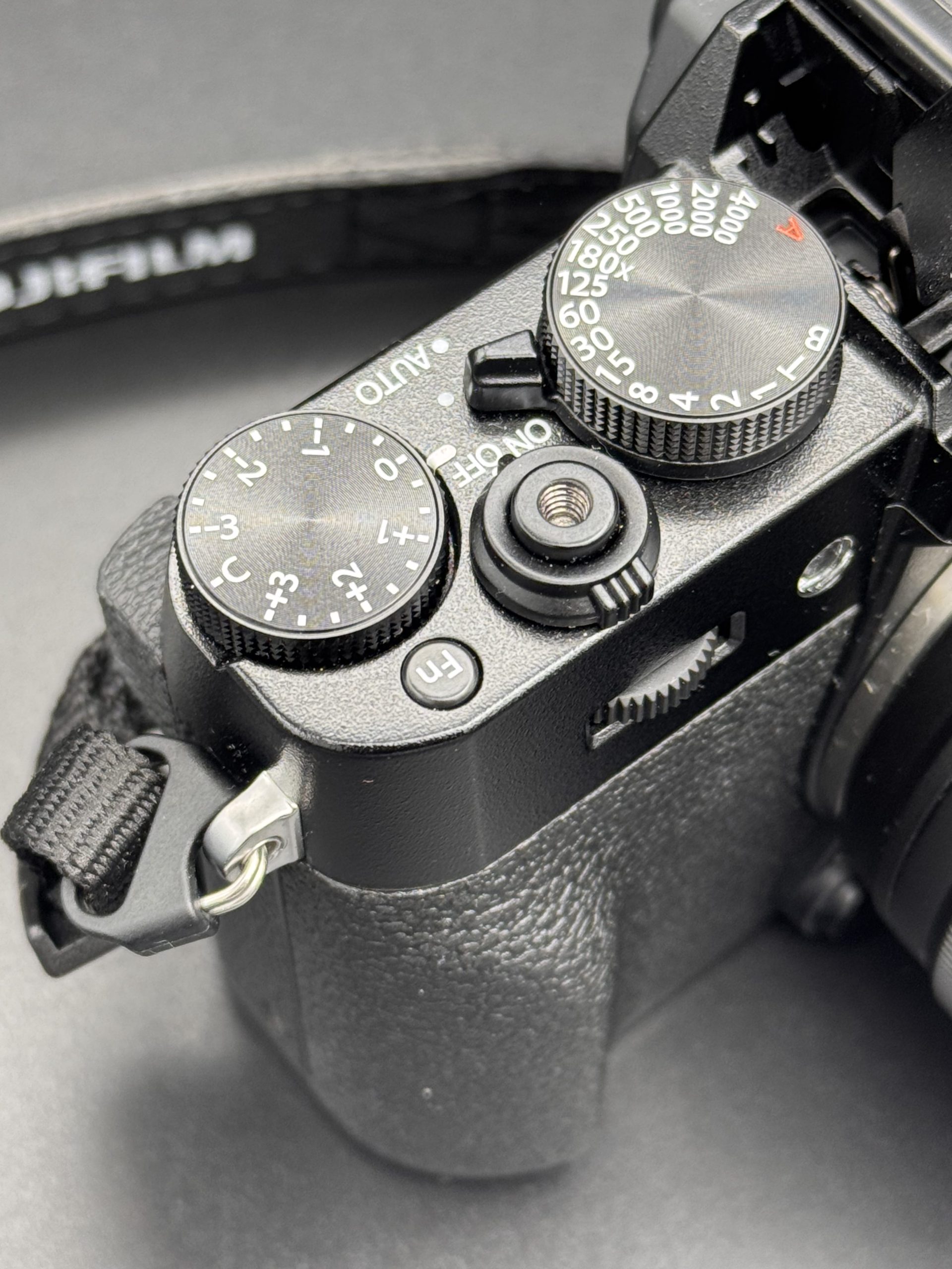 Sulla parte superiore troviamo: ghiera dei tempi, ghiera di compensazione esposizione, pulsante di scatto con interruttore on/off e slitta hot-shoe per flash o trigger. Sul retro trovi un joystick per il punto AF, i classici tasti Fuji e un display da 3” inclinabile, non completamente ribaltabile: comodo a livello fotografico, meno per l’autoritratto puro.